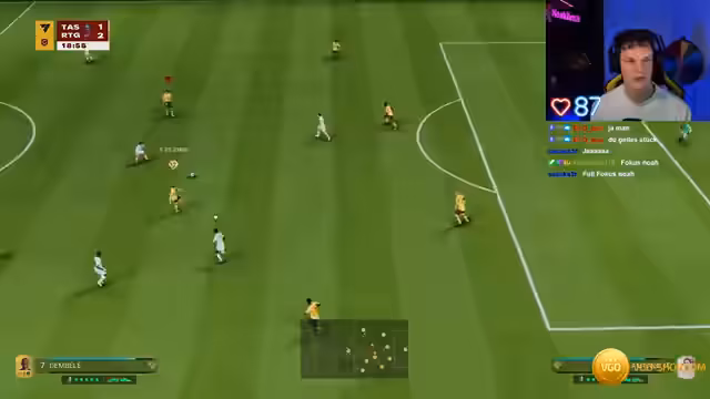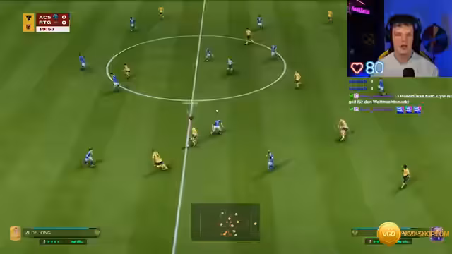 01:15:43Während eines Spiels gegen einen Gegner, der mit Goldkarten spielt, tritt der Spieler 'Dennis Undav' mit 66 PS auf und ist extrem dominant. Diese Situation löst beim Streamer Erinnerungen an historische Niederlagen gegen denselben Gegner in Dortmund wach. Der Gegner nutzt Verwaltungstaktik, während der Streamer die Spielweise des Gegners und des Spiels selbst als 'verrückt' und 'programmiert' bezeichnet, was seine Frustration weiter schürt.
