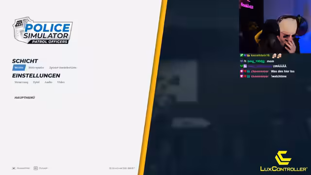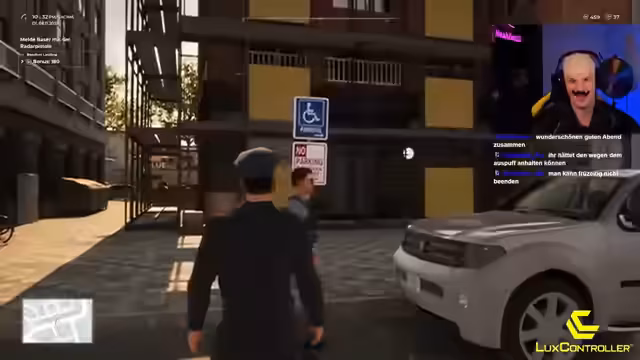 05:20:12Genau zur angekündigten Zeit startet der Stream in den Polizeisimulator. Der Streamer und sein Kollege Uwe, der im echten Leben Polizist ist, verbinden sich mit dem Spiel. Sie wählen ihre Charaktere, wobei der Streamer sich selbst zum Kommandant befördert. Es kommt dabei zu technischen Schwierigkeiten, da sie unterschiedliche Spielversionen nutzen, was einen Neustart des Spiels erforderlich macht. Zunächst nehmen sie an einer Fußstreife teil, um Strafzettel für falsch geparkte Autos auszustellen.
