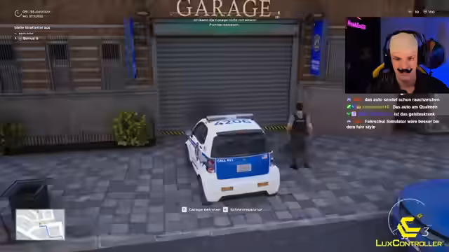 06:34:00Die Spieler fahren zur Garage, um das beschädigte Polizeiauto zu reparieren. Dort können sie das Fahrzeug umlackieren, ein deutsches Polizeilackierung wählen und das Einsatzhorn ändern. Es besteht auch die Möglichkeit, ein anderes Auto auszuwählen, aber sie entscheiden sich, das aktuelle Modell zu behalten. Während das Auto repariert wird, überprüft der Beifahrer die Strafzettel und stellt fest, dass viele Bürger Strafzettel für Gehwegparken erhalten haben. Er erwähnt, dass man auch Nagelbretter für Verfolgungsjagden ins Auto packen kann. Sie bemerken ein falsch geparktes Fahrzeug mit kaputter Scheibe und beschließen, es zu ignorieren, da es sich um ein Taxi handelt. Der Beifahrer schlägt vor, einen Spoiler anzubringen, um bei Verfolgungsjagden besser zu sein. Sie suchen weiter nach Falschparkern, finden aber keine, die sie bestrafen können. Der Beifahrer weist darauf hin, dass sie die Augen nach verdächtigen Personen oder Falschparkern offen halten müssen. Sie entdecken einen Falschparker auf dem Gehweg und beschließen, ihn sofort aufzuschreiben. Es wird erwähnt, dass sie später ein Radargerät erhalten können, um Geschwindigkeiten zu messen.