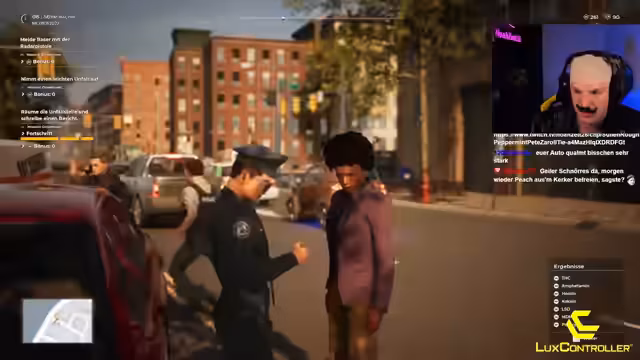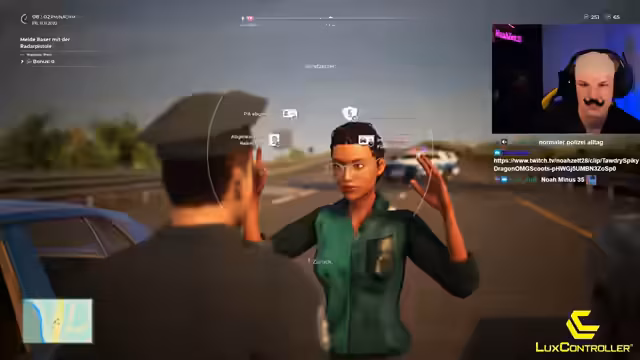 05:18:55Der Streamer und Uwe starten den Polizeisimulator. Es wird erwähnt, dass dies nun jeden Sonntag stattfinden soll. Der Streamer hat sich für 35 Euro ein Polizeikostüm bei Amazon gekauft, das er als besser als die Uniformen der Berliner Polizei beschreibt. Es gibt anfängliche Schwierigkeiten beim Verbinden im Mehrspielermodus aufgrund unterschiedlicher Spielversionen, was eine kurze Download-Pause erfordert. Nach erfolgreicher Verbindung beginnen sie ihre erste Schicht als Fußstreife. Die Aufgabe besteht darin, Strafzettel für Falschparken zu verteilen. Es kommt zu humorvollen Situationen, als der Streamer versucht, ein falsch geparktes Auto sofort abschleppen zu lassen und dabei über die Konsequenzen für eine alte Oma spekuliert. Die Spieler sammeln Punkte für korrekte Maßnahmen und verlieren Punkte für Fehler. Der Streamer äußert sich begeistert über die Möglichkeit, im Spiel aufzuleveln und dadurch neue Funktionen wie einen Streifenwagen freizuschalten.