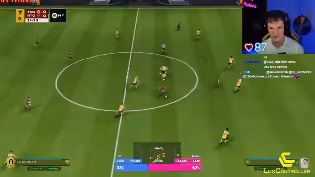 01:56:30Der Streamer durchlebt eine Phase intensiver Frustration im Spiel, die er als 'Schlittschuh Simulator 2025' bezeichnet. Trotz anfänglicher Hoffnung auf einen Durchbruch durch Spieler wie Hansen, stirbt diese schnell. Die Mentalität des Aufgebens, bevor es richtig losgeht, wird thematisiert. Es folgen aggressive Spielzüge, darunter eine manuelle Grätsche, um den Gegner Borussia Dortmund einzuschüchtern. Die Spannung steigt in der 81. Minute, als eine defensive Haltung eingenommen werden muss, um dem Druck des Gegners standzuhalten. Der Streamer betont, dass es letztendlich nur ums Gewinnen oder Verlieren geht, unabhängig davon, wie der Sieg errungen wird. Das Team setzt auf eine Betonmischung in der Defensive, um einen hart erkämpften 6:5-Sieg nach Hause zu bringen, was als verdient angesehen wird.