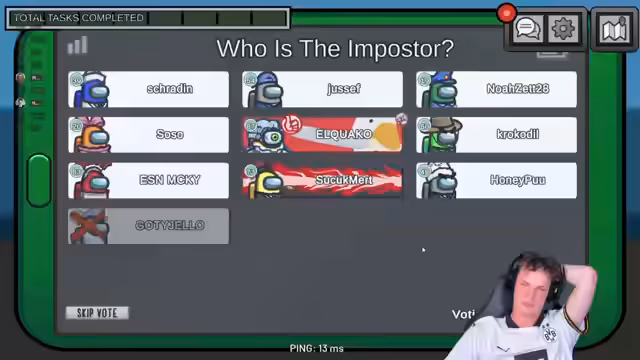 02:30:33Die Konversation konzentriert sich stark auf die Spielstrategie und die Votings in Among Us. Ein Teilnehmer analysiert kritisch, warum ein Mitspieler namens Schradin sich 'wie eine festgefahrene Mistforz' verhält und sich nicht anstrengt. Es werden intensiv Kill-Calls und Bewegungsdaten von Spielern wie Alquarko und Sophia diskutiert. Teilnehmer wie Micky und Noah streiten darüber, wer die Leiche gesehen hat, wie sich bewegt hat und wer als Impostor verdächtig ist. Der Ton ist dabei oft gereizt und es werden gegenseitige Vorwürfe des Trollens oder Nichternst-Spielens laut.