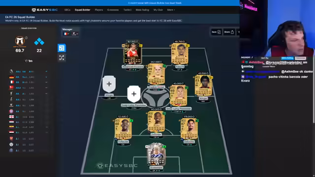 00:16:53Der Streamer berichtet über seinen aktuellen Aufbau des FIFA-Teams, nachdem er verschiedene Packs gezogen hat. Er erwägt Spieler wie Tonali und Gravenbech für seine Formation, diskutiert über Tauschmöglichkeiten und zieht Potenziale für den Markt in Betracht. Er erwähnt Oliver Kahn und beobachtet, wie sich die Spieler im Team entwickeln und sie eventuell anpasst werden.