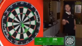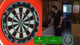 01:02:24Nach dem Rausflug aus dem ersten Turnier beginnt der Streamer sofort mit den Vorbereitungen für das nächste Turnier, das in wenigen Minuten startet. Er versucht, seine mentalen und technischen Probleme zu lösen, indem er sich konzentriert und eine neue Runde zum Einspielen spielt. Er gibt eine kurze Übersicht über seine Equipment-Details, Luke Humphreys Darts mit langen L-Style Flights und 33 mm Spitzen, und startet direkt in die Registrierung für das nächste Turnier.