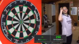 00:30:01Das erste Turniermatch gegen Lucky Shot startet. Der Streamer spielt einen Average von 30, was er selbst als unzureichend und ärgerlich bezeichnet. Trotzdem fällt die Entscheidung knapp aus. Das Match wird von technischen Problemen überschattet, da das Dartboard des Gegners und des Streamers ausfallen und neu gestartet werden müssen. Nach der Niederlage wird die Genauigkeit des Systems hinterfragt, was auf Kalibrierungsprobleme hindeutet.