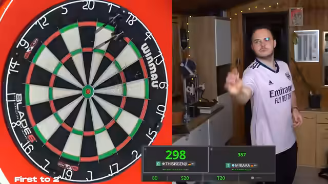 00:00:00Der Stream wird eröffnet und es kommt zu mehreren technischen Herausforderungen. Es wird getestet, ob die Synchronität zwischen den Plattformen und das Bild des Dartboards stimmen. Nach einem Neustart des Streaming-Programms und einem Wechsel des Spielmodus von Shanghai auf normales 501, tauchen weiterhin Probleme auf. Ein Kalibrierungsfehler und eine nicht erkannte Zahl werfen den Streamer zurück, der jedoch nach einer Neukalibrierung weitermacht.