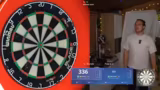 00:28:18Das eigentliche Liga-Match beginnt. Der Streamer spielt gegen einen Gegner mit einem Anfangsaverage von 38. Das Match verläuft durchwachsen; der Streamer hat Schwierigkeiten mit der Konzentration und dem Finishing, während seine Technik und sein Wurfgefühl an sich gut sind. Trotz einiger guter Wurfserien und hoher Scores wie 140er, werden viele Legs durch Fehler beim Finishen, besonders auf niedrige Doppel, verspielt.