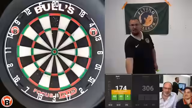 00:50:26Das Hauptturnier beginnt mit der Losung der ersten Paarungen. Es treten Anthony gegen Hannes, Basti gegen Sabri, Sola gegen Benji und Niklas gegen Marius an. Das erste Match zwischen Anthony und Hannes ist ein Kopf-an-Kopf-Rennen. Anthony wird als der 'Michael Smith' des Teams beschrieben, während Hannes als underdog gilt, sich aber stark steigert und das Match mit 3-2 für sich entscheiden kann. Anschließend spielen Basti und Sabi gegeneinander in einem extrem umkämpften Spiel, das Sabri am Ende knapp für sich entscheidet.