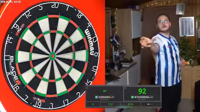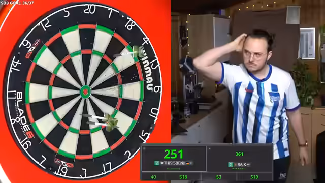 00:00:02Der Stream startet mit dem traditionellen Darts-Abend, der um 17:30 Uhr beginnen soll. Der Streamer begrüßt seine Zuschauer und gibt an, dass er heute Turniere bis ca. 21 Uhr spielen wird. Zu Beginn des Streams treten technische Probleme mit der Bild- und Tonqualität auf, wobei der Ton vom Mikrofon nicht vom Board-Trennung und die Kamera falsch eingestellt ist. Nach einigen Anpassungen und einem Neustart des Darts-Counters und der Autodarts-Software kann der Stream beginnen.