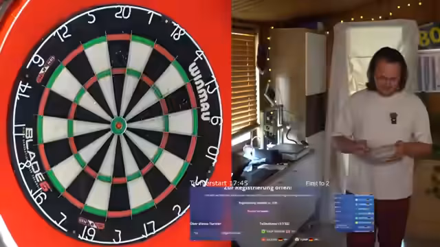 00:00:00Zu Beginn des Streams klagt der Streamer über Arm- und Muskelkater aufgrund von Gartenarbeit und erwähnt technische Schwierigkeiten mit der Restream-Plattform, die zu einem instabilen Stream führt. Trotzdem beginnt das erste Turnier, und der Streamer beschreibt seine anfänglichen Würfe als unkonstant. Die technische Situation bleibt prekär, und der Stream droht mehrmals abzubrechen.