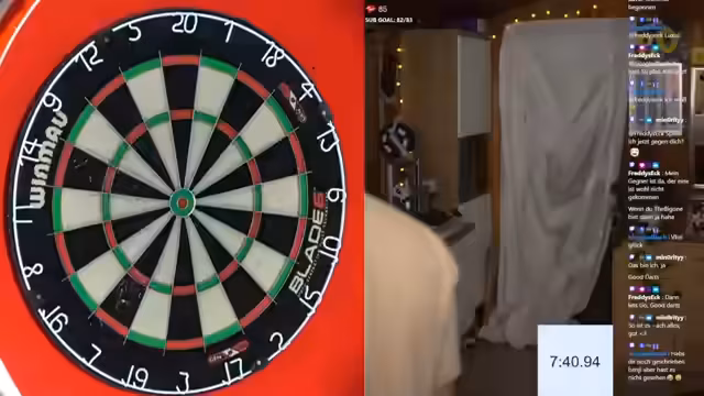 00:00:00Der Stream beginnt mit einer Begrüßung an die Zuschauer und einer Entschuldigung für die Verspätung. Hauptthemen des Starts sind technische Anpassungen wie das Einblenden des Chats von YouTube und Twitch sowie die Vorstellung der neuen Winmau Fusion-Darts, welche zum ersten Mal getestet werden. Nachdem einige technische Schwierigkeiten, wie das Fehlen des Chat-Overlays und der Apple Watch-Pulsanzeige, gelöst wurden, widmet sich der Streamer der obligatorischen Damon Hatter Aufwärm-Routine. Diese beinhaltet Wurfübungen auf Bullseye, verschiedene Doppel- und Triple-Felder sowie Checkouts, um einen ersten Flow für die bevorstehenden Turniere zu finden.