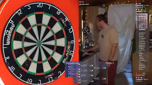 02:00:08Ein durchschnittlicher Puls von 83 beim Dart zeigt die physische Anspannung. Trotzdem kämpft der Streamer mit einer starken Spielunsicherheit. Er verfehlt mehrfach seine Ziele, was zu harscher Selbstkritik führt. Dies äußert sich in Aussagen wie 'Kann mich selbst anscheißen' und 'Das ist zum Kotzen'. Im Viertelfinale eines Turniers verschenkt er vorteilhafte Situationen, unter anderem durch Fehlwürfe auf die Doppelfelder, was zu einer bitteren 2-0-Niederlage führt. Dieses Verschleppen von Leads wird als 'sehr, sehr verschenkt' bezeichnet und quält ihn sichtlich.