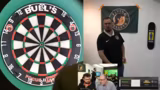 01:32:44Es ist das erste Halbfinale zwischen Basti und Anthony. Der Streamer stellt die beiden Spieler vor und stellt fest, dass es ein Top-Spiel des Abends ist. Basti hat bereits im ersten Spiel gegen starke Gegner wie Sven Dahlem und Schwab gewonnen und einen soliden Average von 70. Anthony hatte im ersten Spiel Schwierigkeiten, aber holte das Spiel souverän nach Hause. Das Match ist First to Three und der Gewinner erhält das Recht, im Finale anzutreten. Beide Spieler sind mental stark und zeigen Nerven.