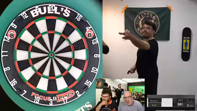 01:45:51Es werden Details zur Premier League Saison besprochen, einschließlich der Anzahl der Spieltage (neun) und des Final Eight. Die Liga startet Ende September/Anfang Oktober wieder. Der Gewinner eines Spiels bekommt eine Rückhand. Es wird die aktuelle Halbfinal-Situation erklärt und die Anzahl der benötigten Siege für den Turniersieg. Anthony vergibt die Chance auf Doppel-13, was Basti die Möglichkeit gibt, einen Decider zu erzwingen. Es wird die Doppel-13 gelobt. Die Liga wird als zweitunterste Liga im Vergleich zum Fußball eingeordnet. Es wird über Lieblingsdoppel gesprochen und die Bezirksliga im Vergleich zu anderen Ligen eingeordnet. Beide Spieler (Anthony und Basti) scheinen unzufrieden mit ihrem Spiel zu sein. Anthony verpasst die Möglichkeit, den Zweitplatzierten rauszuhauen. Basti wird als Bieteville bezeichnet und trinkt an diesem Spieltag kein Bier, sondern Desperados. Im Spiel zwischen Marius und Sabri hat Marius neue Darts und neue Spitzen. Sabri kommt nicht gut in die Partie und schüttelt den Arm weg. Es wird kritisiert, dass Basti das Spiel nicht aus der Hand geben darf und dass ihm die Anfeuerung fehlt. Sabri wird eine gelbe Karte angedroht, falls er im Finish-Bereich steht. Marius gewinnt das erste Leg. Sabri versucht, die Höhe zu treffen, beeindruckt Marius aber nicht. Sabri stellt sich wie ein Boxer an die Linie. Es wird die Bedeutung der Heilbrühl für 167 diskutiert. Es wird kritisiert, dass sich einige Spieler nicht mit den Dingen beschäftigen und sich dann wundern, warum sie kein 18er spielen können.