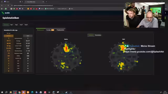 01:26:01Sabris Spielstil wird analysiert, da er seine Darts schnell wirft und nicht den Rhythmus des Gegners anpasst. Der Streamer gibt ihm den Rat, kurz innezuhalten und das Tempo zu überdenken. Sabri beginnt stark mit einem Triple 19 und sammelt Punkte, hat aber Schwierigkeiten, das hohe Niveau aufrechtzuerhalten. Zwar trifft er die 3, aber sein Finish ist verbesserungswürdig, besonders auf der 19. Durch einen glücklichen Wurf und einem Matchstart hat Sabri einen kleinen Vorteil im Spiel.