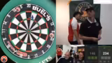 01:18:18Maro hat einen verpassten Finish und steht bei 78. Er versucht das Spiel mit Doppel 10 zu entscheiden, verfehlt aber knapp und landet am Rand des Screens. Der Streamer diskutiert über die "Double Trouble"-Situation, bei der Spieler an der Doppelfeldgrenze nach einem Überwurf eine weitere Chance auf ein Finish bekommen.