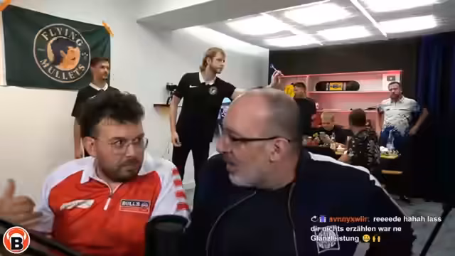 01:14:50Der Stream beginnt mit der Vorstellung von Boris von Flying Mullets Basketball, der gemeinsam mit Hannes ein Sommerfestturnier gewonnen hat. Hannes wird als talentierter Dartspieler beschrieben, der laut Streamer seit sechs Monaten keine neuen Pfeile mehr benötigt und bei Eintracht Spandau einen Sechs-Jahres-Vertrag im Fußball unterschrieben hat. Er spielt Darts in der 57er Everett League.