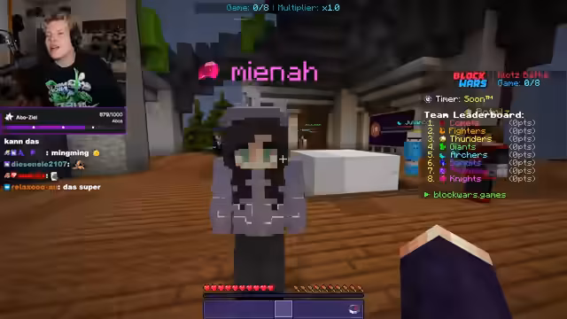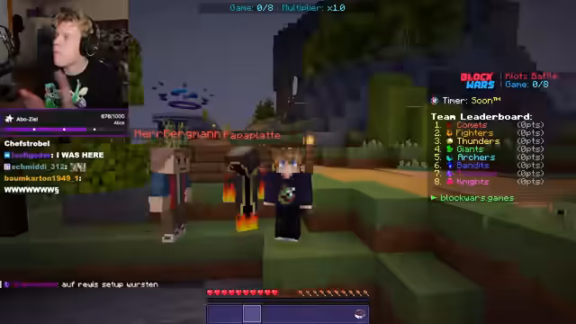 02:05:41Nach der Besprechung des Kochspiels wird beschlossen, ein paar Runden Elytra-Rennen zum Üben zu machen. Es wird festgestellt, dass Bergmann gut im Elytra-Fliegen ist. Norea sieht sich als psychologische Stärke des Teams, während Bergmann und Norea als ADHS-Kids bezeichnet werden. Es wird überlegt, welche Minispiele im Turnier gespielt werden sollen, darunter Spleef, Jump'n'Run und Schießstand. Der Chat wird um Hilfe bei der Auswahl der Spiele gebeten. Es wird kurz über die Miete gesprochen, bevor mit dem Üben der Minispiele begonnen wird. Im Elytra-Rennen gibt es keine Raketen, sondern Boost-Pads. Nach dem Elytra-Rennen wird ein Parcours gespielt. Es wird bedauert, dass Minecraft Minispiele nicht mehr so beliebt sind wie früher, da sie oft von toxischen Spielern dominiert werden. Früher war es entspannter, als Bergmann und andere noch chillig Bad Wars gespielt haben. Norea trollt im Jump'n'Run und geht kurz, um etwas zu trinken zu holen.