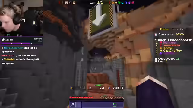 05:43:31Das Team konzentriert sich weiterhin auf die Goldkurse und versucht, diese so schnell wie möglich abzuschließen. Es werden verschiedene Goldkurse entdeckt, darunter Dropper und Obstacles. Die Spieler koordinieren sich, um die Kurse zu finden und abzuschließen, und geben sich gegenseitig Anweisungen. Es kommt zu Schwierigkeiten, insbesondere beim Obstacles-Kurs, der als Hölle bezeichnet wird. Ein Spieler hat Ping-Probleme und wird getrollt. Es wird überlegt, ob es sinnvoll ist, die schwierigen Elytra-Kurse zu machen. Die Spieler stellen fest, dass sie immer noch auf dem ersten Platz liegen, aber der Vorsprung ist knapp. Es wird diskutiert, was genau bei den Iceboat-Kursen zu tun ist. Ein Spieler gibt zu, die Zeit nicht im Blick gehabt zu haben, aber das Team erreicht trotzdem den ersten Platz. Die Spieler sind euphorisch und feiern ihren Sieg. Es wird festgestellt, dass ein Spieler besonders gut in Minecraft ist und die meisten Goldmedaillen gewonnen hat. Die Teammitglieder loben sich gegenseitig und betonen die Bedeutung des Teamworks.