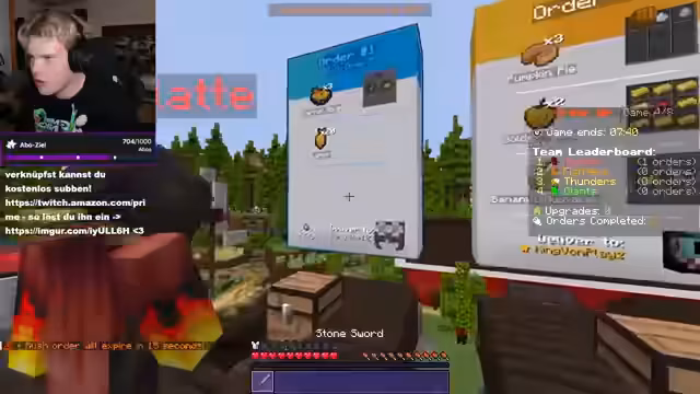 05:00:11Es wird das Spiel 'Order Up' ausgewählt, bei dem es darum geht, Bestellungen zu erfüllen und auszuliefern. Es wird erklärt, dass das Team Bestellungen entgegennimmt, die Zutaten craftet und sie dann mit der Elytra ausliefert. Die Inventar-Slots sind deaktiviert, und es gibt einen Komposter für nicht benötigte Gegenstände sowie die Möglichkeit, Upgrades zu kaufen. Die erste Order ist Weizen, und es gibt Custom Rezepte und Zutaten wie Zitronen. Es wird eine Strategie entwickelt, bei der ein Spieler Weed holt, während andere sich um andere Zutaten kümmern. Es gibt auch Quick Orders, die in kurzer Zeit erledigt werden müssen, um zusätzliche Punkte zu erhalten. Das Team spielt zunächst ein Tutorial, um das Spiel besser zu verstehen. Die Aufgaben werden verteilt, wobei ein Spieler Kartoffeln und Möhren holt, ein anderer Eier und Zucker, und ein dritter Fische und Zuckerrohr. Es gibt auch einen Bob the Blender, bei dem Zutaten für Items gehandelt werden können. Es wird festgestellt, dass das Spiel sehr chaotisch ist und niemand es versteht.