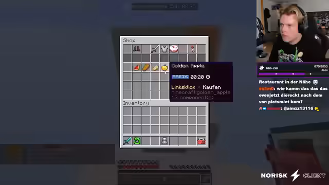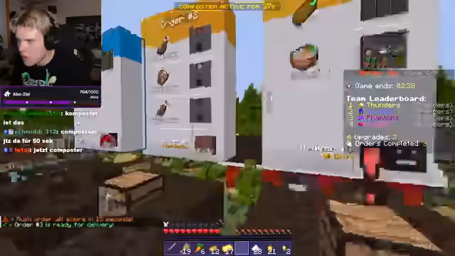 01:57:35Die Trainingsrunde dient dazu, ein Gefühl für den Cooldown zwischen den Aktionen zu bekommen, insbesondere für Bergmann und Norea. Es geht darum, wieder in den Jump'n'Run-Modus zu finden. Anschließend wird das Kochspiel 'Order Up' besprochen, bei dem es darum geht, Bestellungen zu sammeln, zu braten und auszuliefern. Die Taktik sieht vor, dass einer die Zutaten sammelt, einer brät und Norea mit Elytra die Auslieferung übernimmt. Rush Orders, die im ersten Slot stehen, sind schwieriger, aber lohnender und haben ein Zeitlimit. Nach einer Phase des Sammelns von Zutaten sollen Bergmann und Norea in der Küche arbeiten, während Norea ausliefert. Upgrades sind vorhanden, aber ihr Wert wird noch diskutiert. Es wird überlegt, ob es sinnvoll ist, sich auf den Upgrade-Table zu konzentrieren oder spontan zu entscheiden, je nachdem, welche Ressourcen verfügbar sind. Die Rollenverteilung soll klar sein, wobei Bergmann und Norea in der Küche bleiben und Norea farmt und ausliefert. Die ersten Bestellungen sollen schnell fertig sein, und es ist noch unklar, ob mehrere Bestellungen gleichzeitig mitgenommen werden können. Die Auslieferung soll von Norea übernommen werden, da er am schnellsten ist. Bei Leerlauf soll Norea farmen, insbesondere Weizen, Äpfel und Pilze. Das Ziel ist, die Kochstation nicht oft verlassen zu müssen und am Anfang so viel wie möglich zu sammeln.