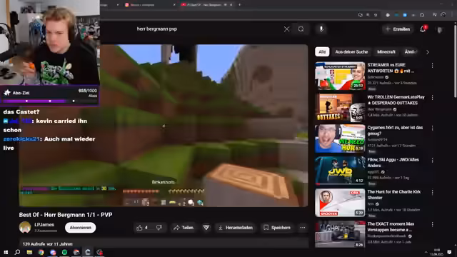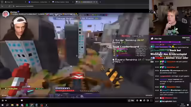 00:49:36Es wird betont, dass nicht über das Trimax-Hochzeitsvideo geredet wird, da Max zwei Dinge, die er nicht drin haben wollte, trotzdem reingeschnitten hat. Es wird erklärt, dass es im Turnier um 10.000 Euro geht und es PvP-Modi mit Only Sword und Crossbow gibt, was dem Streamer sehr zusagt. Es wird über Jump'n'Run-Modi und Modi, in denen man Essensrezepte kochen muss, gesprochen. Es wird angemerkt, dass man Markus Söder und Heiko verwechseln kann. Es wird klargestellt, dass der Streamer nichts damit zu tun hatte, dass er wieder mit Kevin im Team ist und dass die Modi von Block Wars sind. Er trainiert Bogen und Crossbow und wird von einem anderen Spieler besiegt, der möglicherweise cheatet. Er geht kurz auf Toilette und kündigt an, gleich mit den Jungs zu trainieren. Er bittet um Jammy Mods, wenn er wieder in den Raum kommt. Er äußert seinen Unmut über Hass und fordert mehr Liebe. Er erklärt, dass Bananen gut für den Blutzucker sind und er heute viele essen wird. Er erwähnt, dass er im Notfall Adrenalin spritzen oder Onstream koksen wird, um das Team hochzubringen. Er hat gemerkt, dass er langsam in dem Alter ist, wo er Sodbrennen bekommt. Er freut sich auf die Zusammenarbeit mit Bergmann und hofft, dass sie ins Training einsteigen können. Er ruft Bergmann an, um sich für das Turnier abzusprechen.