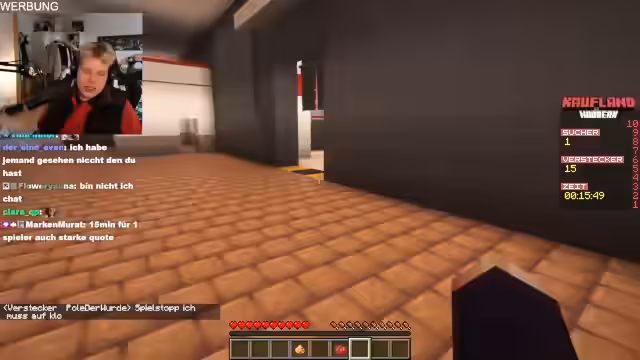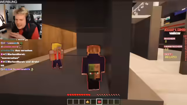Es wurde eine Hide & Seek-Runde auf einer extrem detailgetreuen Minecraft-Kaufland-Map gestartet. Die Suche nach den Spielern gestaltete sich anspruchsvoll, da diese sich oft neu positionierten. Auch ungewöhnliche Verstecke auf den Lichtern sorgten für Frustration. Nach und nach wurden die Spieler eliminiert, bis ein Gewinner gekürt wurde.