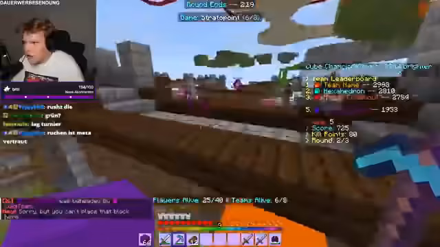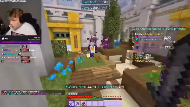 02:49:46Nachdem das Team den dritten Platz in einer Runde belegt hat, gibt es eine kurze Pause. Die individuellen Platzierungen werden besprochen, wobei Huytastic und Heiko als stabil erwähnt werden. Die Teilnahme internationaler Teams wird thematisiert, die anders als deutsche Teams bei PvP-Situationen eher passiv bleiben. Ein wichtiger Fokus liegt auf der Turniermodalität 'POP' und 'Fangen', bei denen unterschiedliche Strategien erforderlich sind. Die Einführung von Elytra nach dem Respawn wird als entscheidender Faktor für den nächsten Kampf identifiziert.