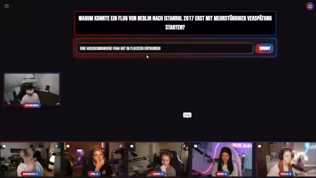 00:10:13Die Teilnehmer für das Quizformat stehen fest: Rose, Phoebe, Hugo und Vaila. Der Streamer äußert Bedenken gegen Hugo und Phoebe, welche er für unintelligent hält, und ist nur gegen Vaila besorgt. Er trägt eine neue Kappe, für die er eine ehrliche Meinung der Chat-Teilnehmer einholen möchte und die stark kritisiert wird. Nach technischen Vorbereitungen mit der Website Video Ninja startet das Quiz. Das Ziel ist, durch das Erfinden von realistischen Lügen die anderen Spieler zu täuschen, um Punkte zu sammeln.