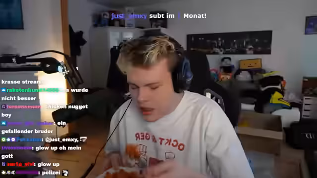 01:23:51Es kommt zu einer humorvollen Auseinandersetzung über einen sogenannten 'Dings-Kabel', ein streckbares Headset-Kabel. Der Streamer spekuliert über einen peinlichen Vorfall, bei dem sein Ex-Freund versehentlich Pornografie auf den Fernseher seiner Eltern gestreamt haben könnte. Dies mündet in eine Diskussion über streamer-spezifische Zwischenfälle. Gleichzeitig gibt es technische Schwierigkeiten bei der Chat-Funktion und einem Teilnehmer.