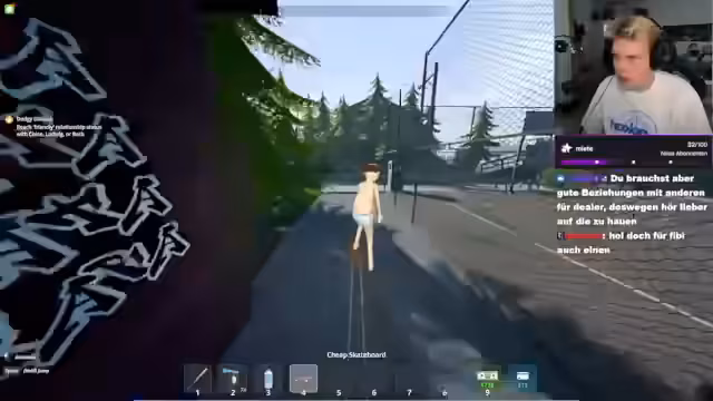 05:43:45Im Spiel erlebt der Streamer einen Rückschlag, als sein angebauter Kusch, der wertvolle Drogen, komplett verloren geht. Dies führt zu einem Verlust von 1200 Euro und einem Zornestest, bei dem der Streamer seinen Fehler erkennt und sich selbst kritisiert. Um die Situation zu retten, wird der Dealer Benji für 500 Euro eingestellt, der 20% der Deals erhält. Gleichzeitig wird kritisiert, dass Phoebe ihre Rolle als Dealer nicht ernst genug nimmt, da sie nur Dungen anbaut und nicht an der strategischen Expansion des Teams teilnimmt.