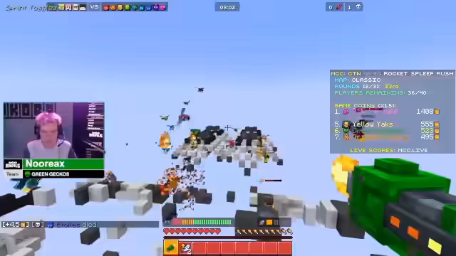 01:48:09Das Team arbeitet daran, Punkte zu sammeln und Gegner zu eliminieren, wobei ein starker Fokus auf die Platzierung von Heatern gelegt wird, um Gegner einzufrieren. Die Kommunikation ist zentral, um zu koordinieren, wer welche Aktionen ausführt und wer geschützt wird. Ein Teammitglied wird als Hauptziel zum Abbau von Blöcken ernannt, während die anderen zur Verteidigung agieren und auf den Abbau von Seelensand achten, um sicherzustellen, dass das Team nicht aus dem Spielbereich fällt.