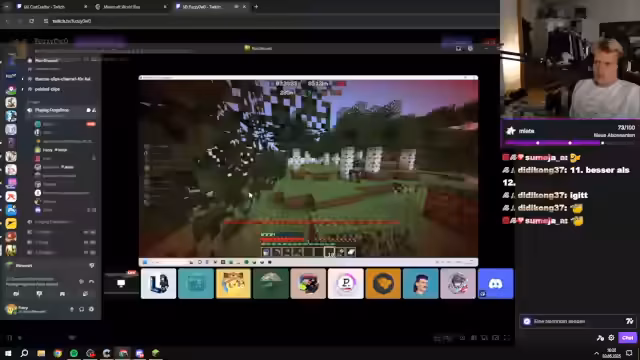 01:45:12Nach einer kurzen Atempause folgt eine schnelle Phase, in der der Streamer dem Chat spontane Sportfragen stellt, um zu interagieren und die Reaktionsspiele zu testen. Themen waren Triathlon-Disziplinen und die Trikotnummern von Spielern. Anschließend wechselt der Fokus komplett zum Gameplay des Minecraft-Events, wobei er initial in einen verbotenen Bereich läuft und dies als Fehler erkennt, der ihn von einem Top-Ten-Platz abrücken könnte.