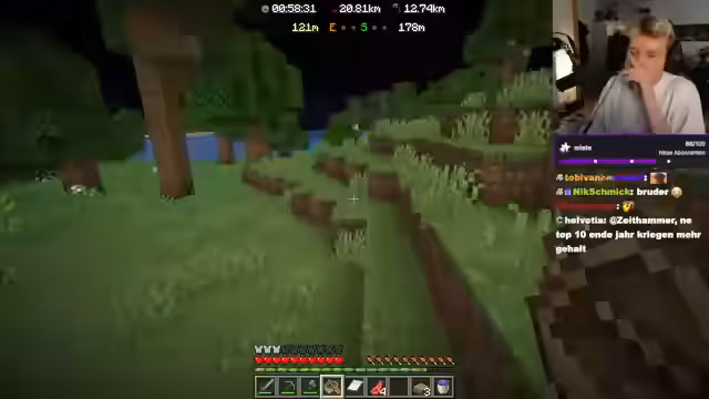 00:57:38Zuerst wird die eigene Platzierung und die errungene Position im Run erwähnt. Er berichtet von einer beeindruckten Bewegung in Minecraft und erklärt sein angeblich exzellentes Können mit einer fiktiven Ziegen-DNA, die ihm angeblich eingeimpft wurde. Die Suche nach Delfinen gestaltet sich jedoch frustrierend und er kritisiert die Umgebung als tot und unattraktiv. Parallel wird über einen österreichischen TikToker namens Rian diskutiert, der bekannt für seine Ziegen-Imitationen ist, was jedoch im Chat kaum Zustimmung findet.