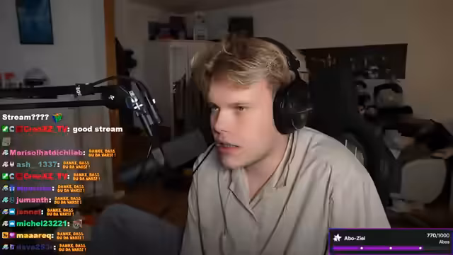 00:05:1400:05:14 Ah, mein Vater sitzt unten im Wohnzimmer, Digga, trinkt, keine Ahnung, wahrscheinlich ein Bierchen, Digga und hört mich rumschreiben wieder. Beste. Ganzer Stolz. Frisch geduscht, ja, es ist kein Kokosöl, es sind keine fettigen Haare, es ist die frisch geduschte Mähne. So. Ähm, was geht, Jungs, es geht. Äh, neuer Tag, neuer Stream, zweimal einer Woche, holy shit. Und, jetzt schon mal Ankündigung, morgen gibt es auch ein Stream. Morgen hat nämlich Kevin den Spielerabend angesetzt und, äh,
