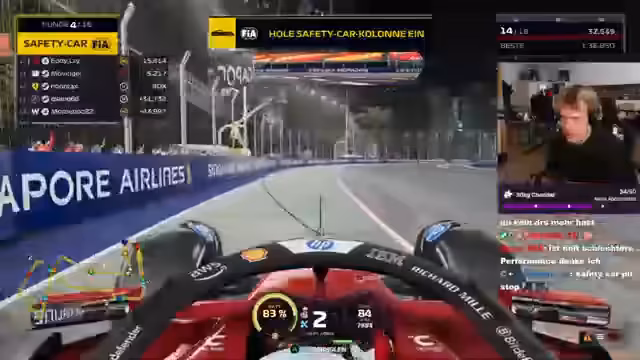 03:13:30Nach dem Qualifying startet das Rennen, bei dem der Streamer strategisch vorgeht, um seine Position zu halten. Es kommt jedoch zu mehreren Zwischenfällen: Er erhält Zeitstrafen, weil er die Streckengrenzen überschreitet (Track Limits), und es kommt zu Kollisionen, bei denen sein Flügel beschädigt wird. Rennabläufe wie Virtuelle Safety Cars (VSC) beeinträchtigen sein Tempo, und er muss sich strategisch an die Fahrzeuge hinter ihm anpassen, um Strafen zu vermeiden und seine Platzierung zu verteidigen.