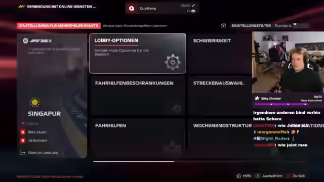 02:57:06Der Streamer entwickelt eine Theorie, dass Ferrari Streamer gezielt in Lobbys schickt, um ihre Dominanz zu demonstrieren und so Marketing zu betreiben. Er berichtet von der Rivalität mit anderen Fahrern, wie Lukas, und zeigt seine Ambitionen, sich weiterzuentwickeln. Ein Rennunfall, bei dem er versehentlich den Heckflügel beschädigt, beendet seine Rennbeteiligung abrupt. Obwohl frustriert, denkt er bereits an die nächste Lobby und denkt über die Zukunft des eSports, über die Nachfolge von Hamilton und die strategischen Vorteile von Top-Fahrern nach.