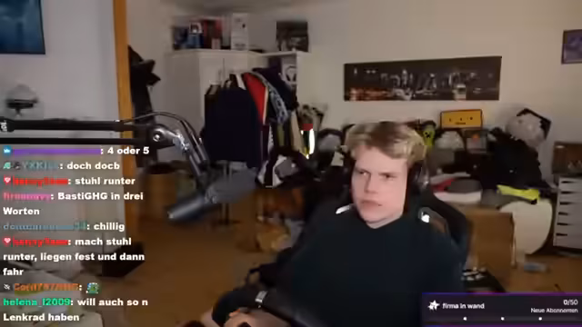 02:20:54Es entwickeln sich Gedanken über eine zukünftige Zusammenarbeit mit einem Hardware-Hersteller. Der Streamer erwägt, ein Lenkrad als Sponsoring-Geschenk zu erhalten und es im Stream zu bewerben, was er als effektives Marketing für die Firma und als Möglichkeit zur Verbesserung seiner eigenen Ausrüstung ansieht. Gleichzeitig spricht er seine ambitionierten Ziele im eSport an. Er glaubt, mit intensivem Training und einem Commitment könnte er den Schritt zum Profi schaffen und an professionellen Ligen wie der Iron League teilnehmen.
