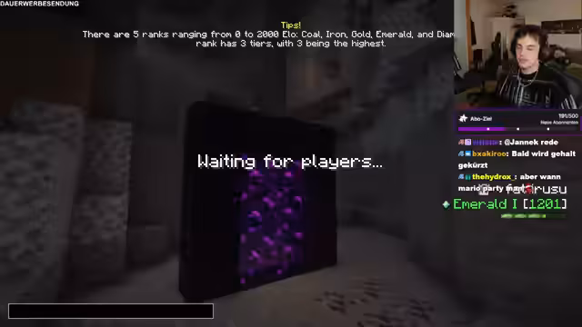 19:24:39Während des Streams traten wiederholt technische Schwierigkeiten auf. So berichtete der Streamer von Problemen bei der Suche nach dem Portalraum in Minecraft, die Serververbindung für verschiedene Spielrunden fiel aus und war nicht wiederherstellbar, was zu spontanen Planänderungen führte. Auch Setup-Fragen wurden diskutiert, wie der Vergleich eines anderen Streamers mit dessen Maus, Mauspad und Monitor, welches sich als schneller und geiler anfühlte.