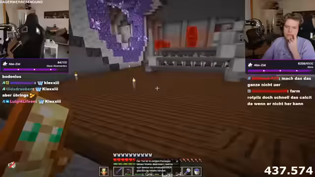 00:14:39Als eine der letzten Aktionen wird die Versteigerung der Craft-Technik-Map angekündigt, bei der der Zuschauer mit den meisten Sub-Gifts gewinnt. Parallel dazu versucht der Streamer, ein Jump'n'Run-Spiel im Nether zu meistern, was auf technische Herausforderungen stößt. Er betont, dass er den Raum erst verlassen darf, wenn er das Spiel abschließt, und sucht nach Lösungen, um den Exit zu schaffen.