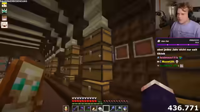 04:42:24Es wird eine spontane Kooperation mit einem Freund namens Marcel eingeleitet. Der Streamer baut einen sogenannten 'Supersmelter', benötigt dafür aber Hilfe beim Abbau von 16 Bücherregalen, da er sie nicht neu craften möchte. Marcel stimmt zu, ihn bei diesem Projekt zu unterstützen. Parallel dazu wird eine Spendenaktion für Basti inszeniert, bei der Zuschauer gebeten werden, Designs für einen benötigten Smelter einzureichen, was eine gemeinschaftliche Anstrengung der Community darstellt.