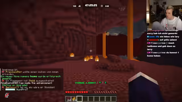 02:38:22Der Streamer beschwert sich, dass Heiko ihm das Spielen im Minecraft-Event nicht erlaubt, und versucht trotzdem, teilzunehmen. Er hat technische Schwierigkeiten mit seiner Maus und der Einstellung, was das Spiel für ihn schwieriger macht. Er versucht, Missionen zu verstehen und mit Larry zu interagieren, um Ressourcen zu erhalten. Er ist frustriert über die Config-Probleme und die fehlenden Mods wie NoFuck und Invidium.