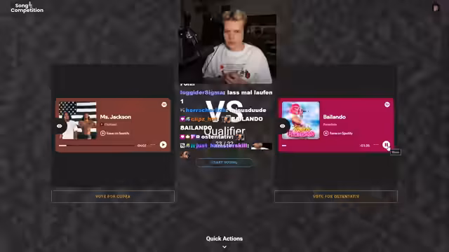 10:35:59Der Streamer startet eine Musikabstimmung im Stil von Song Battle, wobei er speziell nach 'geiler girly Musik' sucht. Es gibt technische Schwierigkeiten, die die Durchführung der Abstimmung behindern, aber der Streamer bleibt geduldig und findet eine Lösung. Die Zuschauer sind eingeladen, ihre Favoriten vorzuschlagen und abzustimmen. Der Streamer betont die Wichtigkeit von guter Musik unterhält die Menge mit humorvollen Kommentaren.
