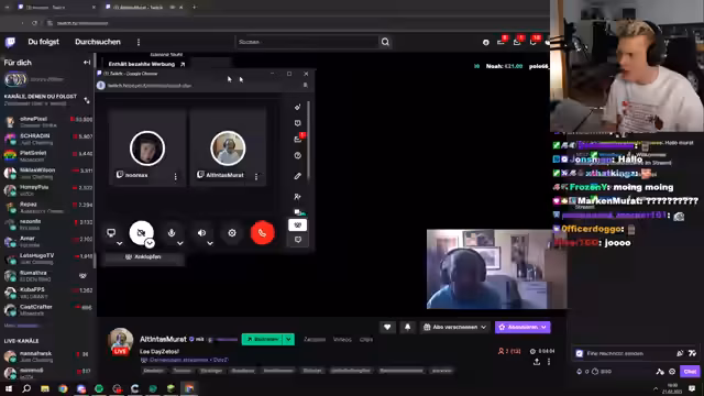 01:41:34Der Streamer unterhält sich mit Zuschauern über die Teilnahme an einem Custom-Nether-Event. Er klopft bei anderen Streamern wie Murat an, um deren Reaktion zu sehen. Murat, älterer Streamer, nimmt den Anruf an, und sie führen eine witzige Konversation über verschiedene Themen, darunter Murats Ehe und Probleme mit seiner Frau während des Streamings. Der Streamer versucht auch, Murat bei einem bestimmten Spiel namens 'Glass' zu installieren.