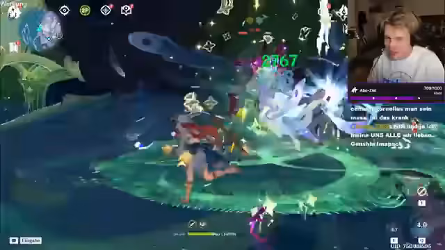 03:05:35Die Streamer erleben intensive Kämpfe in Genshin Impact, wobei einer der Teilnehmer aufgrund eines niedrigeren Levels deutlich weniger Schaden verursacht und häufiger stirbt. Es wird über verschiedene Strategien diskutiert, wie das 'Nassmachen' von Gegnern, um den Schaden zu erhöhen, und die Notwendigkeit eines Heilers im Team. Trotzdem gibt es Schwierigkeiten, da der Bossgegner sehr schnell ist und hohen Schaden verursacht, was zu häufigen Toden führt. Die Gruppe versucht, sich durch Teleportation und das Freischalten von Wegpunkten neu zu positionieren, um den Kampf zu erleichtern. Es wird auch über die Bedeutung von Essen zur Regeneration gesprochen, wobei einige Spieler bereits alle ihre Vorräte verbraucht haben. Die Streamer experimentieren mit verschiedenen Charakteren und Taktiken, um den Boss zu besiegen, was jedoch aufgrund des fehlenden Heilers und der hohen Geschwindigkeit des Gegners erschwert wird. Trotz der Herausforderungen bleibt die Stimmung humorvoll, und die Gruppe gibt nicht auf, verschiedene Strategien auszuprobieren.