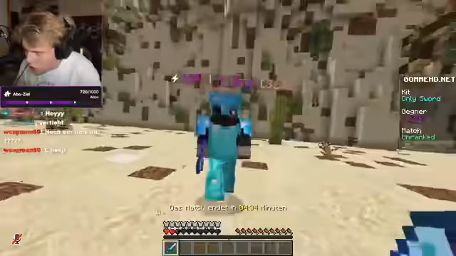 06:06:54Die Stimmung wird agiler, als der Streamer wieder in den PvP-Modus wechselt. Er kämpft gegen verschiedene Gegner, darunter Bombi und Mika, und verwendet dabei verschiedene Taktiken wie 'Jump Reset'. Der Chat ist hochaktiv und interagiert stark mit den Kämpfen. Dabei kommt es zu kontroversen Diskussionen über作弊 (Cheating), insbesondere bezüglich des Spielers Mika, dem vorgeworfen wird, zu haben.
