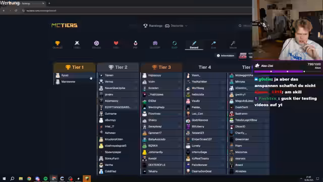 05:35:52Der Stream konzentriert sich auf den Versuch, seinen PvP-Rang in dem Spielmodus 'Only Sword' zu testen und zu verbessern. Es kommt zu technischen Verzögerungen und Frustration, da der Streamer feststellt, dass sein PC und die Serverperformance den Test beeinträchtigen. Er diskutiert intensiv mit dem Chat über die Rangliste 'MC Tears' und welche Tiere er erreichen könnte, wobei er von Low Tier 2 bis Low Tier 3 schwankt und sich unsicher ist, ob dies realistisch ist.