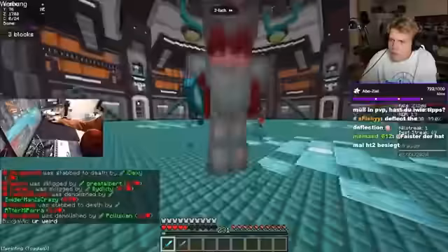 06:03:05Es wird über die Herausforderungen im Minecraft PvP gesprochen, insbesondere über Cheating und Account-Alting. Der Streamer diskutiert mit Zuschauern über die besten Minecraft-Clients und die optimalen Einstellungen, um im Spiel erfolgreich zu sein. Es wird überlegt, ob ein Umzug in die USA notwendig wäre, um die amerikanischen Spieler zu besiegen. Der Streamer spricht über seine persönlichen Ziele im Spiel und wie er diese erreichen kann. Es wird über verschiedene Techniken und Strategien diskutiert, darunter Uppercutten und das Ausnutzen von Fehlern des Gegners. Der Streamer analysiert seine eigenen Fehler und versucht, diese zu korrigieren. Er spricht über die Bedeutung von Teamwork und die Notwendigkeit, sich mit anderen Spielern auszutauschen, um besser zu werden. Es wird auch über die psychologischen Aspekte des Spiels gesprochen, wie der Umgang mit Frustration und die Bedeutung von Selbstvertrauen.