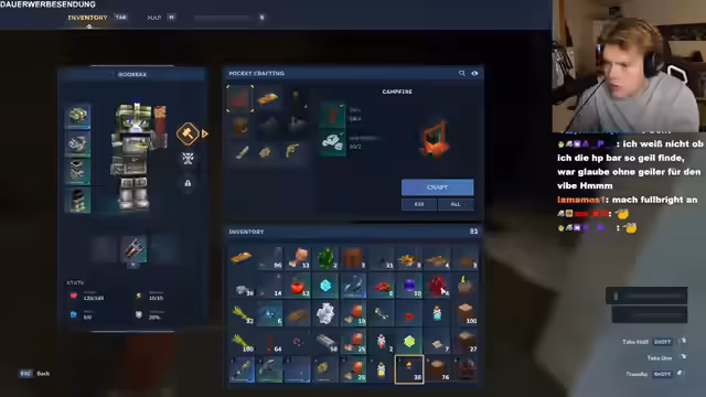 01:27:05Nach dem erfolgreichen Start des Spiels widmet sich der Streamer der Erstellung eines personalisierten Avatars. Im Charakter-Editor werden verschiedene Anpassungen vorgenommen, darunter Kleidung, Haare und Accessoires, wobei der Streamer mehrere Optionen ausprobiert, um ein gewünschtes Aussehen zu finden. Anschließend betritt er die Spielwelt, sammelt erste Ressourcen wie Holz und Beeren, testet Bewegungsabläufe und das Crafting-System, und teilt dabei seine unvoreingenommenen Eindrücke von der Spielmechanik und Atmosphäre.