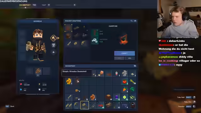 01:38:29Der Streamer erkundet die Welt und stellt fest, dass es sich um ein Open-World-Spiel handelt, das er nicht direkt mit Minecraft vergleichen möchte. Er ist von der soliden Grundmechanik beeindruckt und bemerkt kleine Strukturen und ein Observatorium. Die Arbeit einer Workbench wird getestet, die grundlegende Crafting-Funktionalität zeigt sich in Bögen, Pfeilen, Truhen und Betten. Er ist positiv überrascht von der Atmosphäre und dem Gefühl der Entdeckung, obwohl er anfangs unsicher ist, was genau die Ziele des Spiels sind.